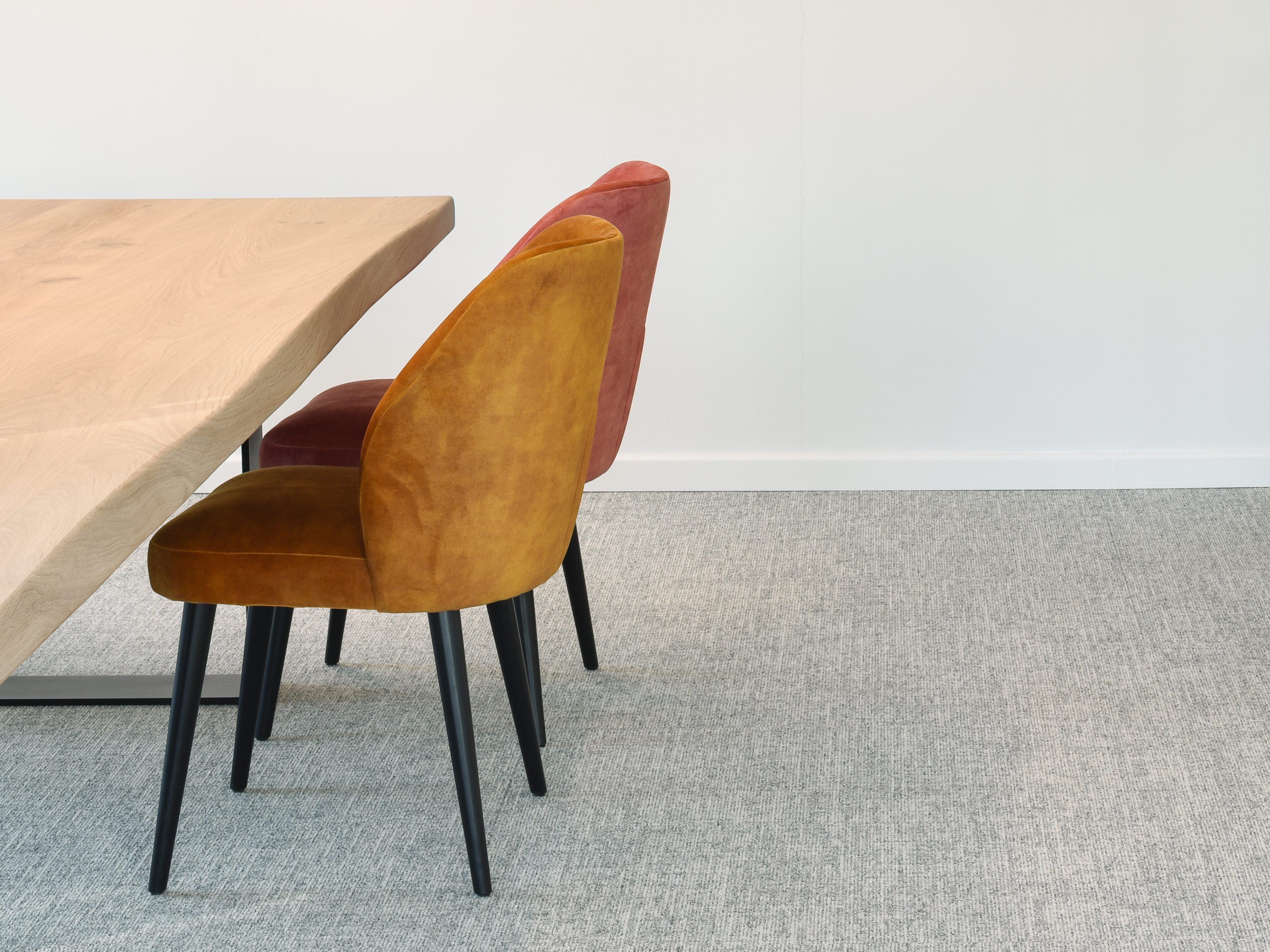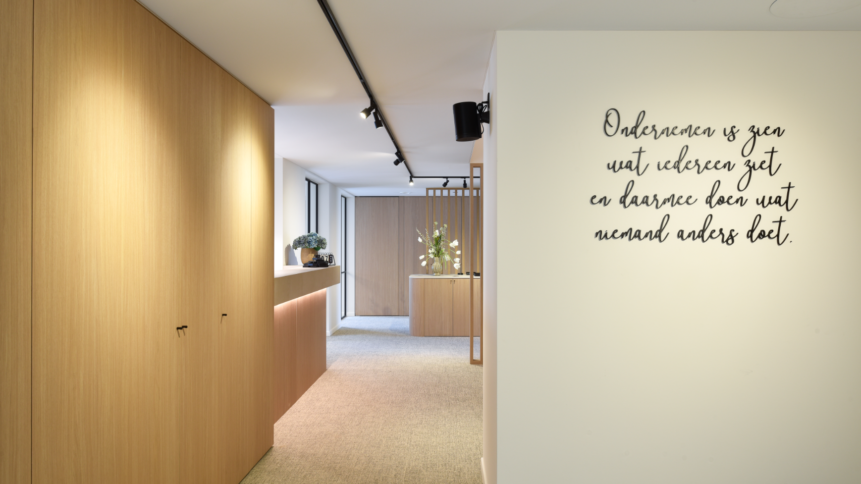 Voor dit kantoor zorgde Maertens Decor voor een volledige renovatie van muren en vloeren. De muren werden zorgvuldig uitgeplamuurd en opgeschuurd voor een perfect schilderresultaat. Vervolgens werd de vloer geëgaliseerd en afgewerkt met hoogwaardige tapijttegels, wat zorgt voor een strakke en professionele uitstraling.