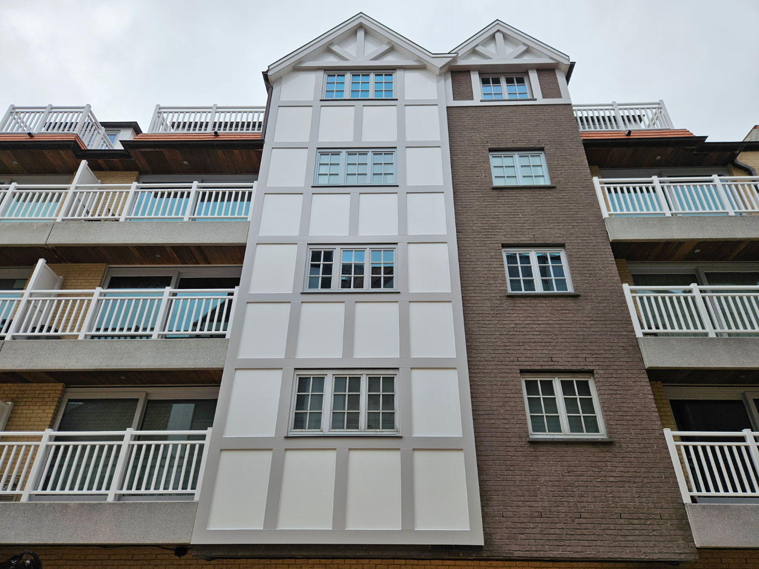 Dankzij onze nauwkeurige aanpak straalt het gebouw opnieuw klasse uit, terwijl het buitenschrijnwerk beschermd is tegen weer en wind. Dit project toont onze expertise in kwalitatieve afwerking van appartementencomplexen.