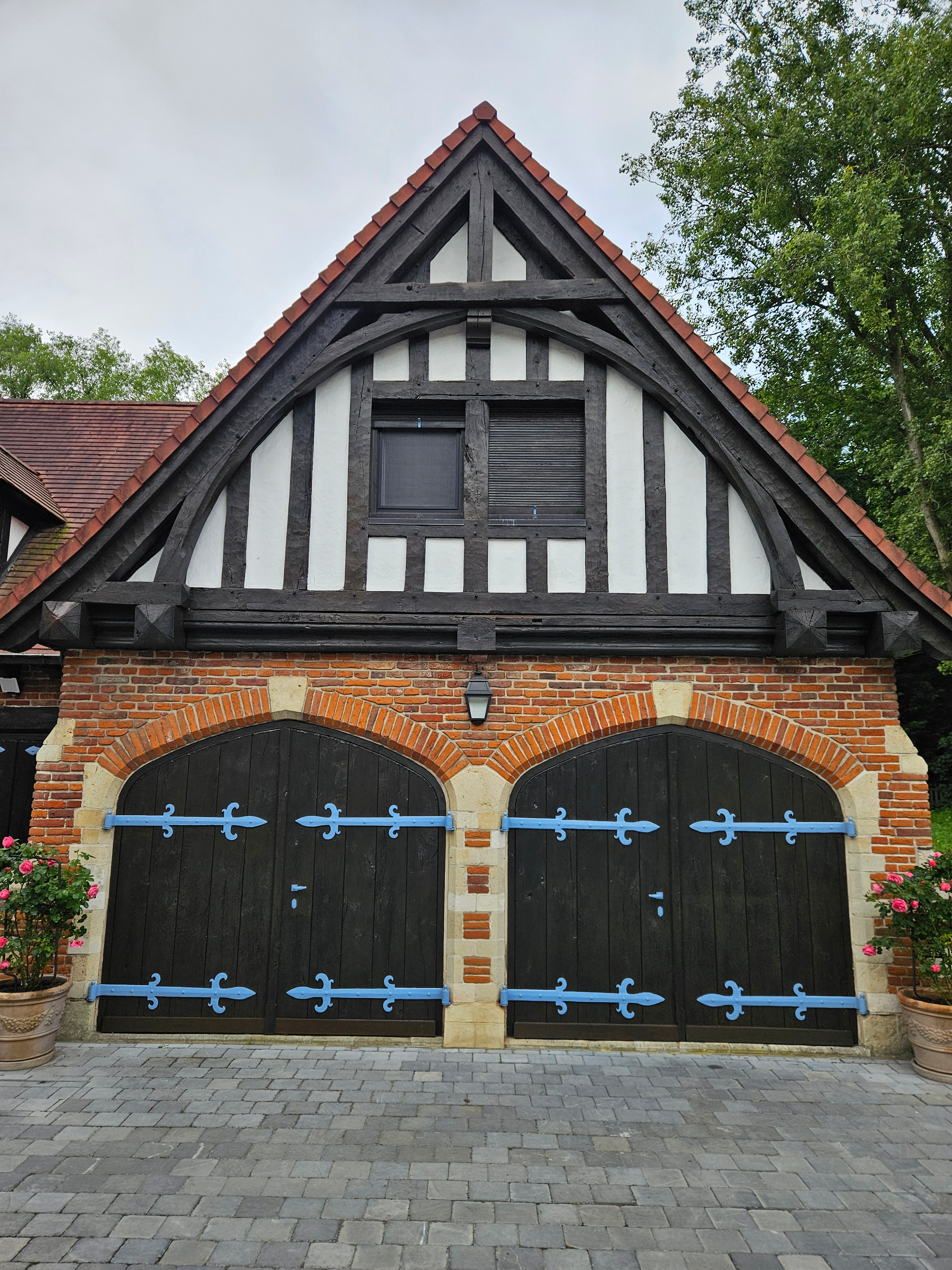 Na deze herstellingen werd het hout opnieuw behandeld met een watergedragen beits. Deze milieuvriendelijke keuze voorkomt lange droogtijden en elimineert het gebruik van white spirit. Zo blijft het karakter van het kasteeltje behouden, met een afwerking die zowel elegant als duurzaam is.